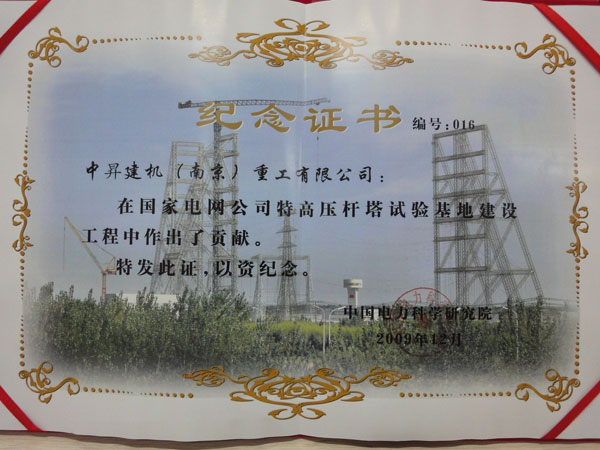 我公司塔吊ZSC80140因在特高壓桿塔試驗(yàn)基地建設(shè)工程中出色表現(xiàn)獲得中國(guó)電力科學(xué)研究院高度評(píng)價(jià)。