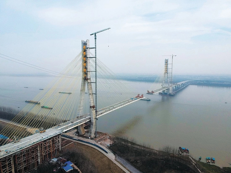 池州長江公路大橋是安徽省“四縱四橫”高速公路網(wǎng)規(guī)劃中“縱三”濟南至祁門高速公路跨越長江的關鍵性工程。長江主通航孔橋即跨江主橋全長1448m,采用登高塔混合梁雙塔斜拉橋方案。