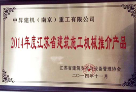 中昇建機(jī)被評為2014年度“江蘇省建筑施工機(jī)械推介產(chǎn)品”榮譽(yù)稱號