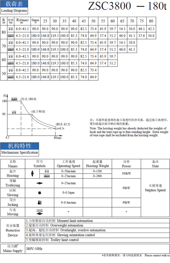 最大起重量: 180 T