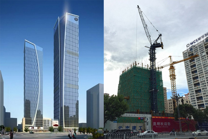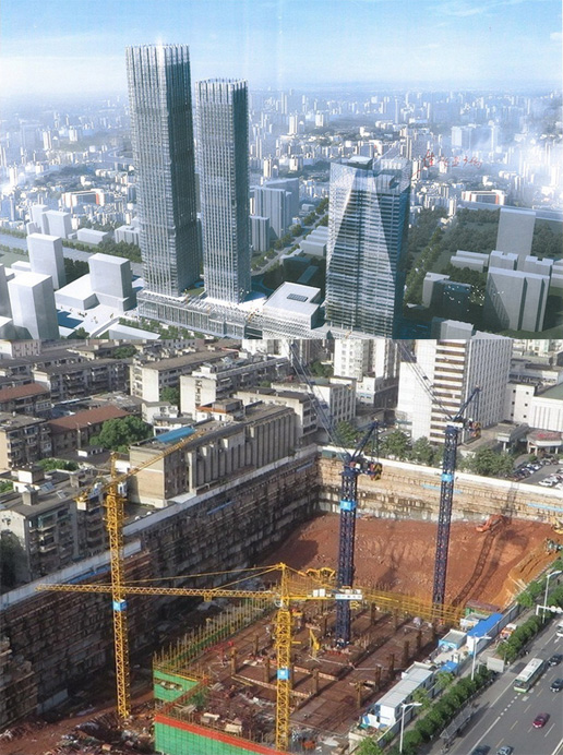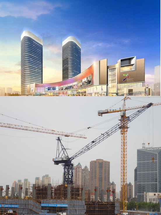 由中建八局承建,施工高度168米,采用中昇建機塔機ZSL500一臺(32T)一臺,ZSL260(18T)一臺。
