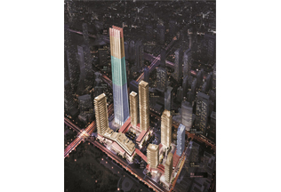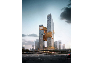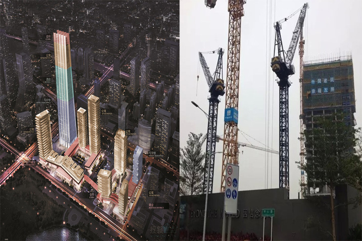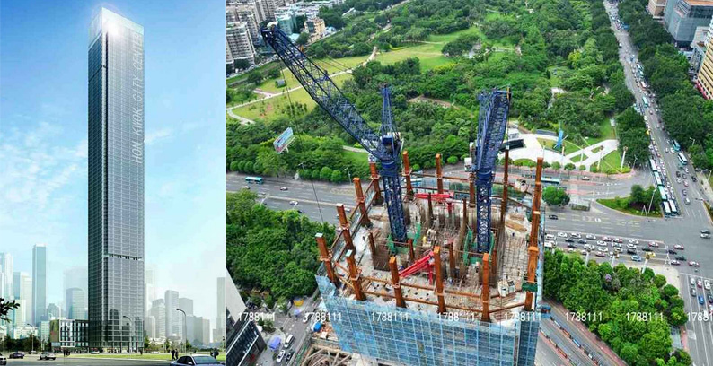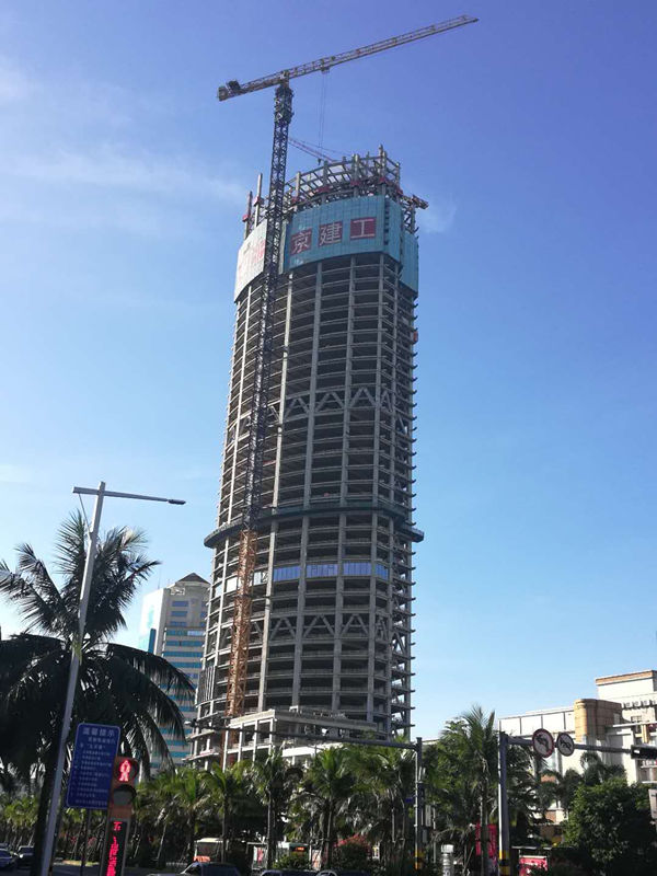 施工高度327米,采用中昇建機(jī)兩臺(tái)ZSL1250(最大吊重64t)