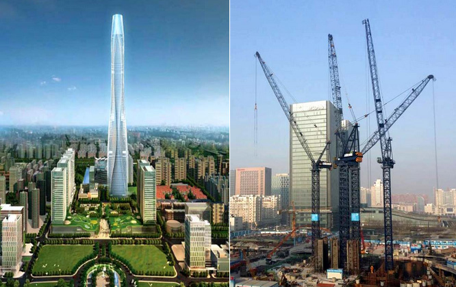建筑主體高度597米,采用中昇建機ZSL2700(100T)一臺。