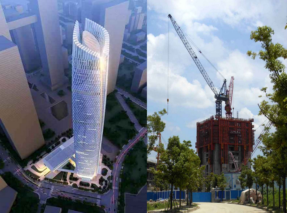 建筑主體高度592.5米,采用中昇建機ZSL2700(100T)兩臺。
