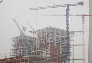 采用中昇建機(jī)ZSC80325一臺(tái) 幅度在23米處最大吊重達(dá)120t(雙小車),在最大幅度80米處可吊重達(dá)32.5t(單小車)