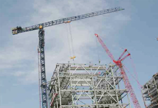 采用中昇建機(jī)ZSC2000A(ZSC60300)水平塔式重機(jī),高度127m最大吊重25m處吊80t